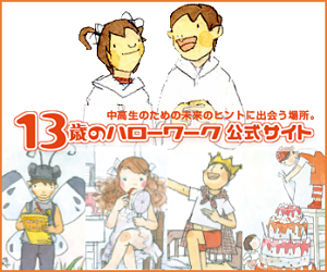中高生のための・・・未来にヒントに出会う場所。村上龍氏著「13歳のハローワーク」から飛び出したサイト。職業紹介と、仕事・将来に関する疑問・質問に答えるフォーラム。著名人インタビュー、さまざまな特集記事など。